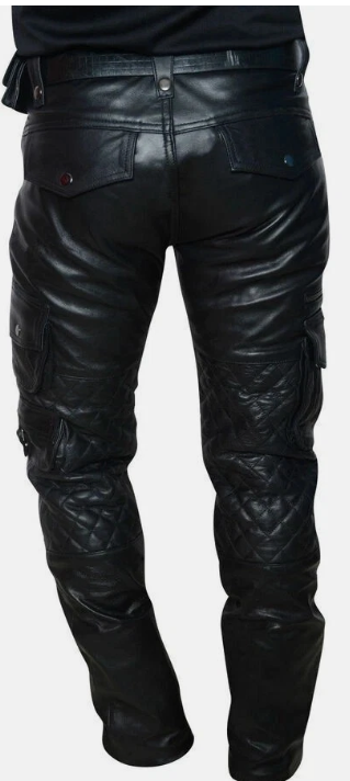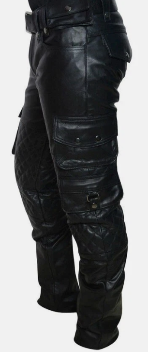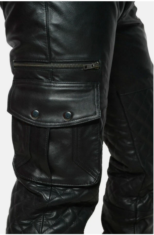 Mens Black Leather 6 Pockets Cargo Pants Jeans Fully Lined - Cargo2-Blk - Mens Black Leather 6 Pockets Cargo Pants Jeans Fully Lined - Cargo2-Blk -