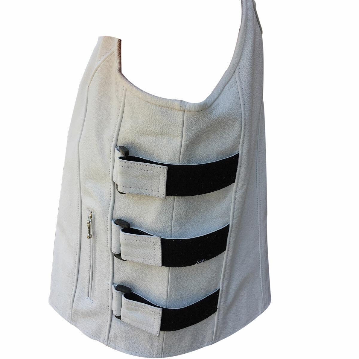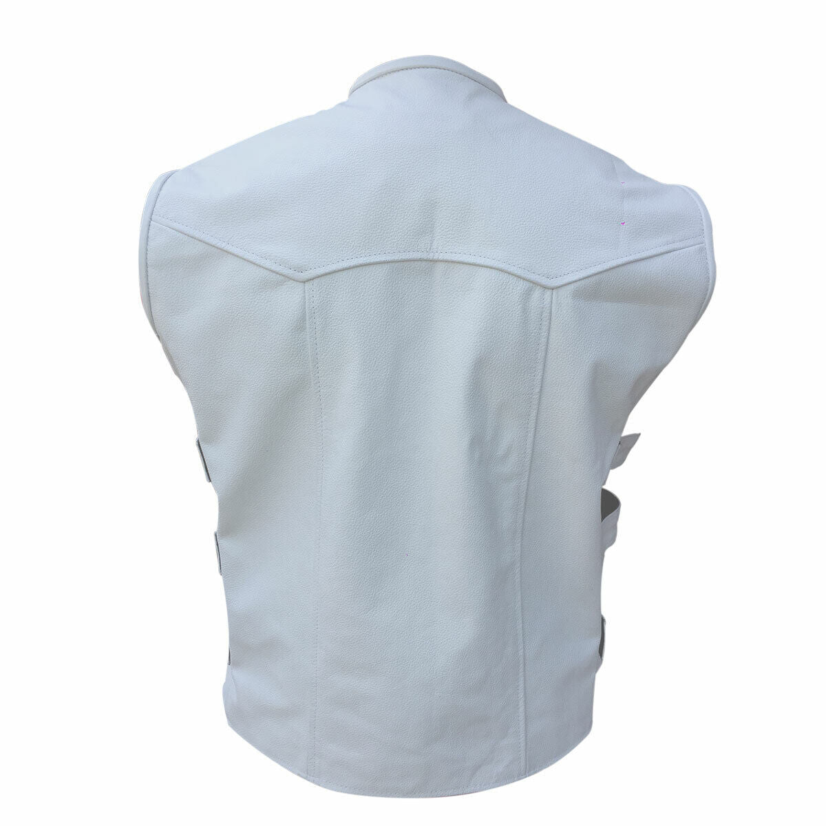 CHALECO DE PIEL BLANCA ESTILO MOTERO PARA HOMBRE - B12-WHT