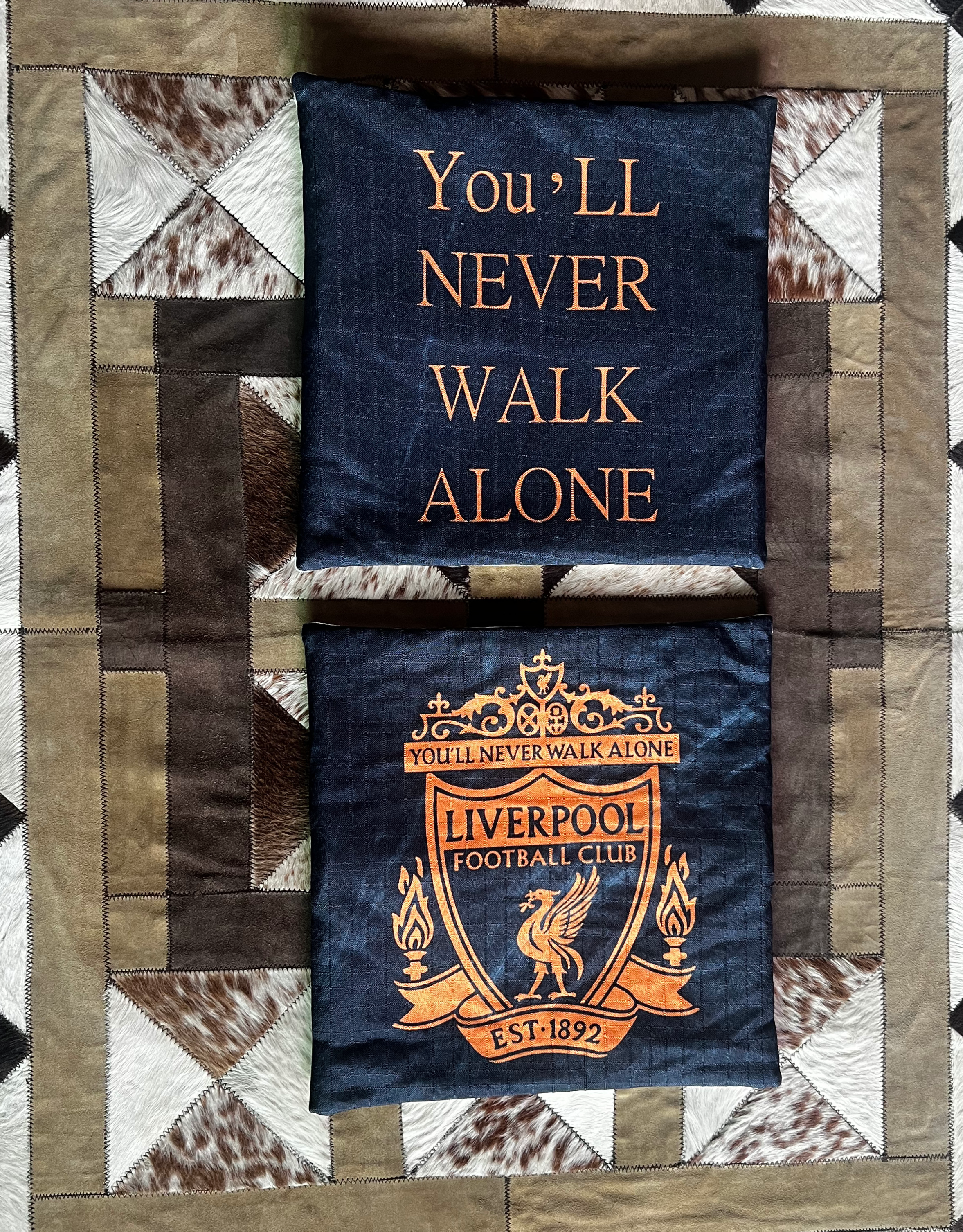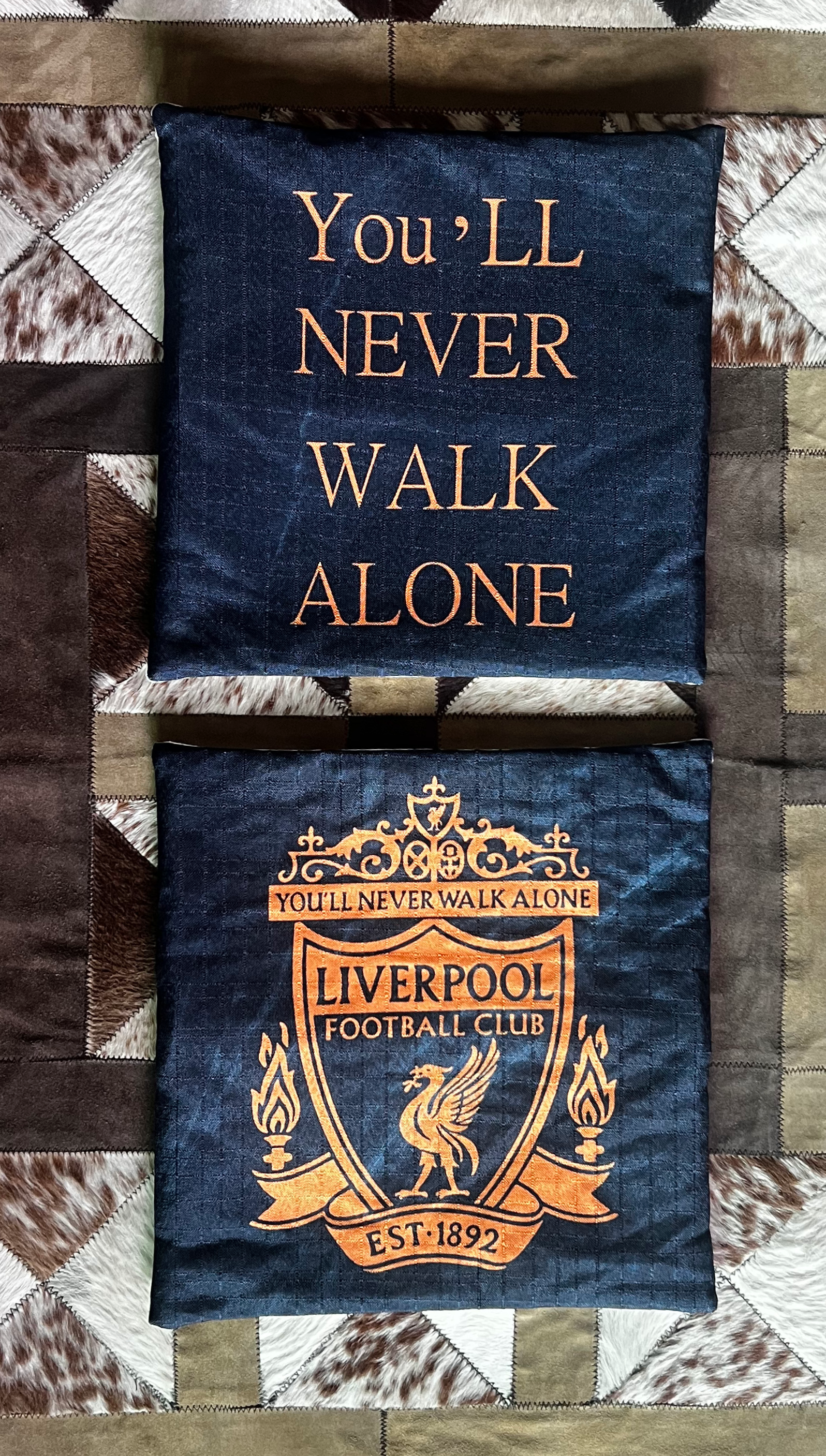 Show your support for Liverpool FC with this pair of unofficial but stylish "You'll Never Walk Alone" cushion covers. Perfect for adding a touch of Anfield spirit to your home, these cushions feature the legendary LFC anthem and club details, making them a great gift for any Reds fan.