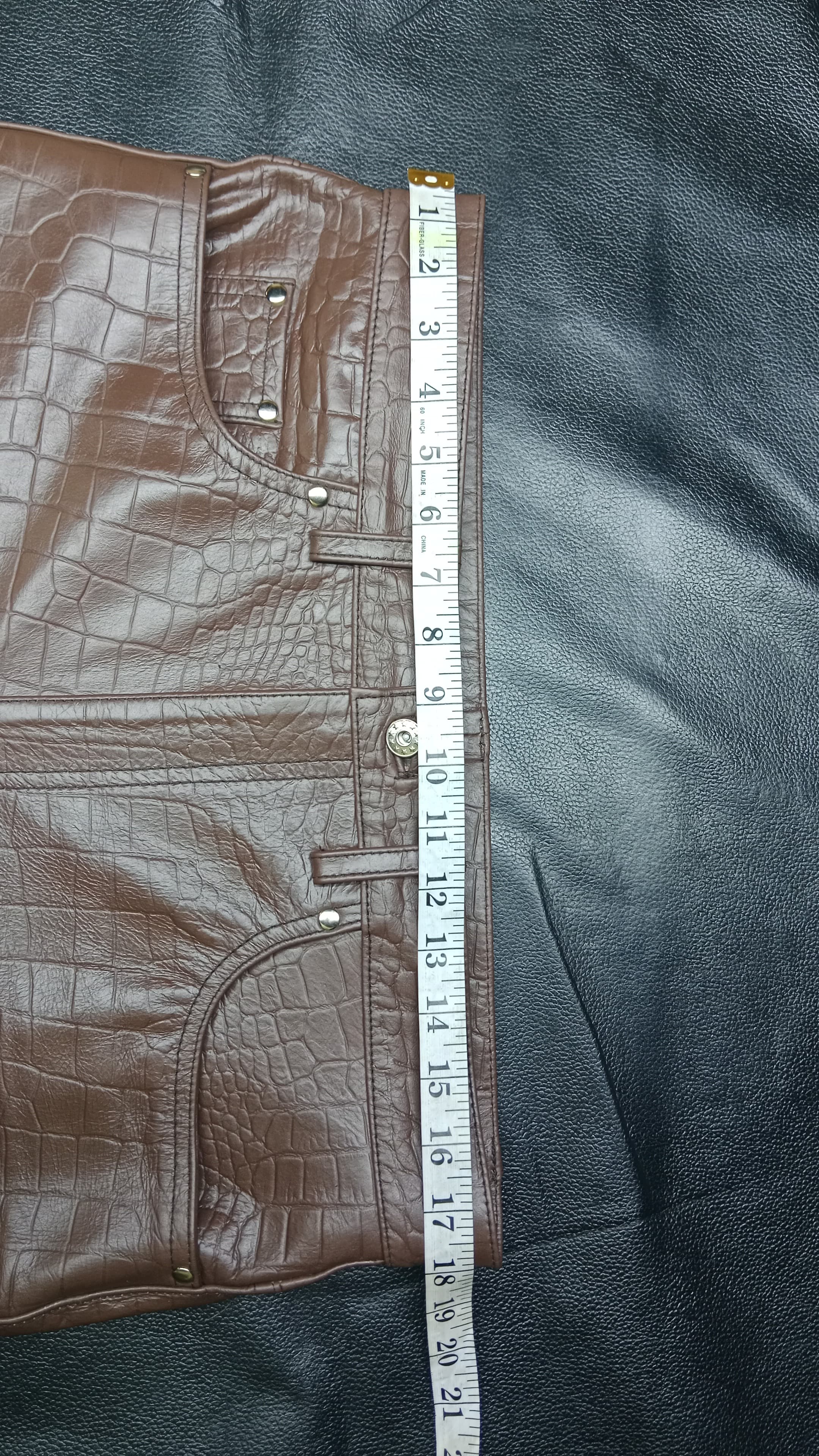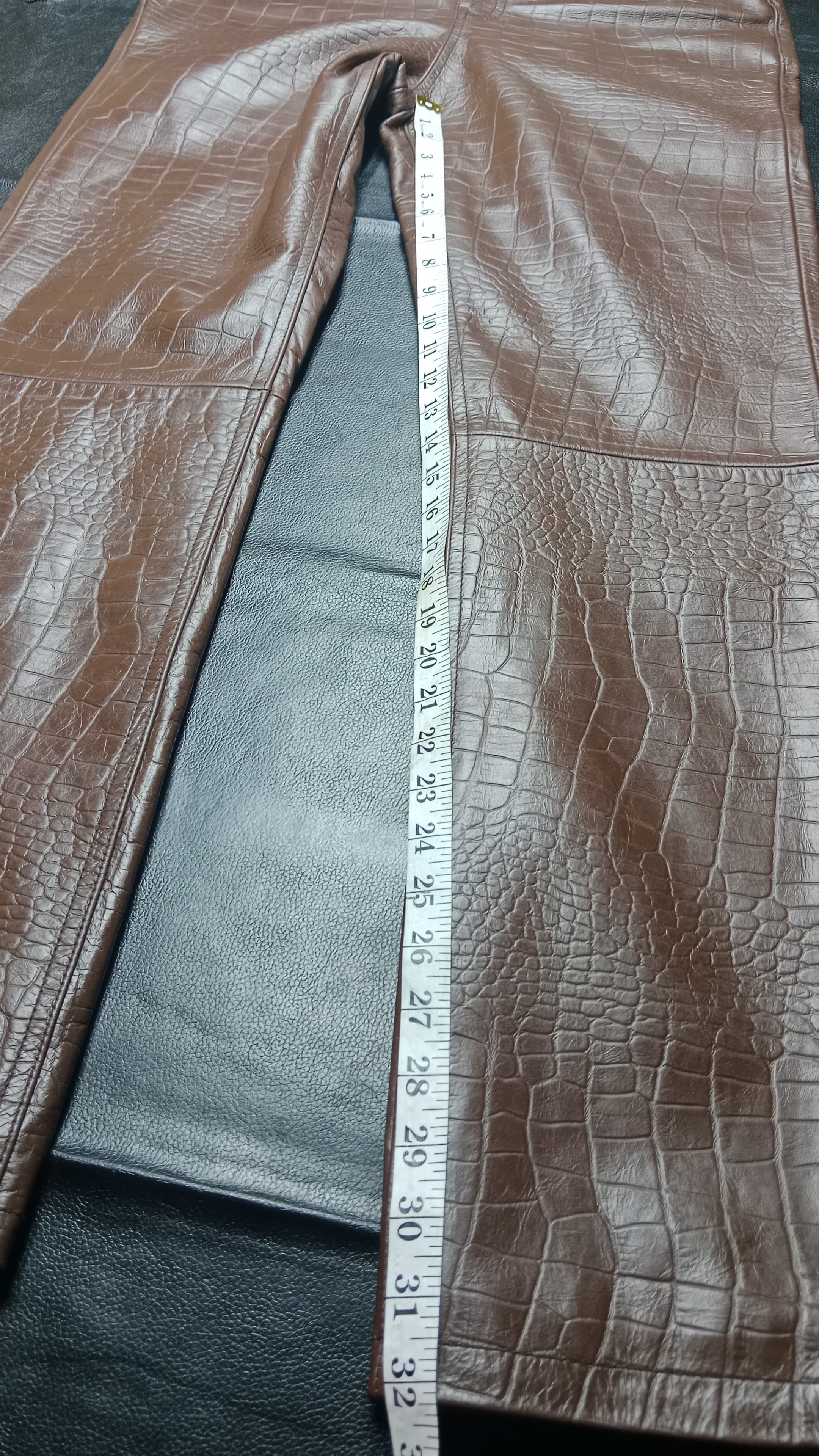 Men Crocodile Print 501 Style Brown Leather Jeans Pants Trouser Bikers Club-501 - Men Crocodile Print 501 Style Brown Leather Jeans Pants Trouser Bikers Club-501 -